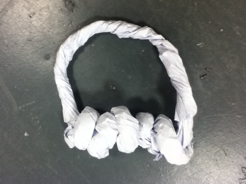 Testing the weight it can take. Note that the sculpture is held together with only paper.
